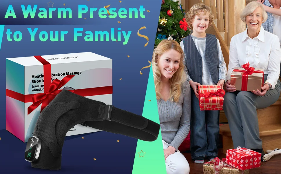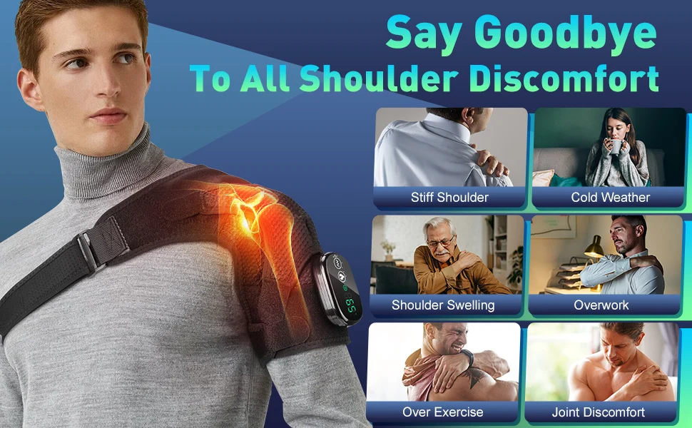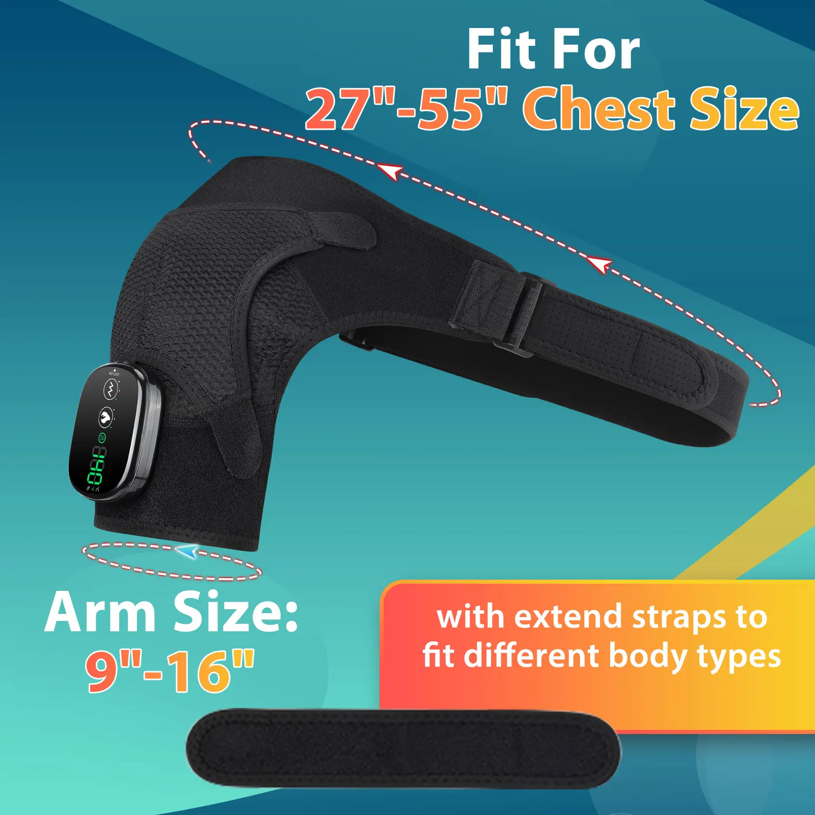 Electric Heating Shoulder Massager Brace Joint Vibration Arthritis Pain Relief LED Smart Controller Adjustable Support Belt